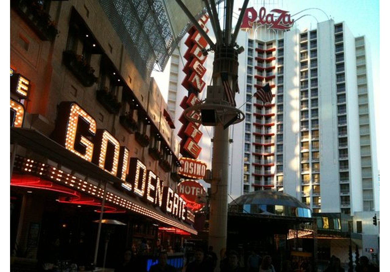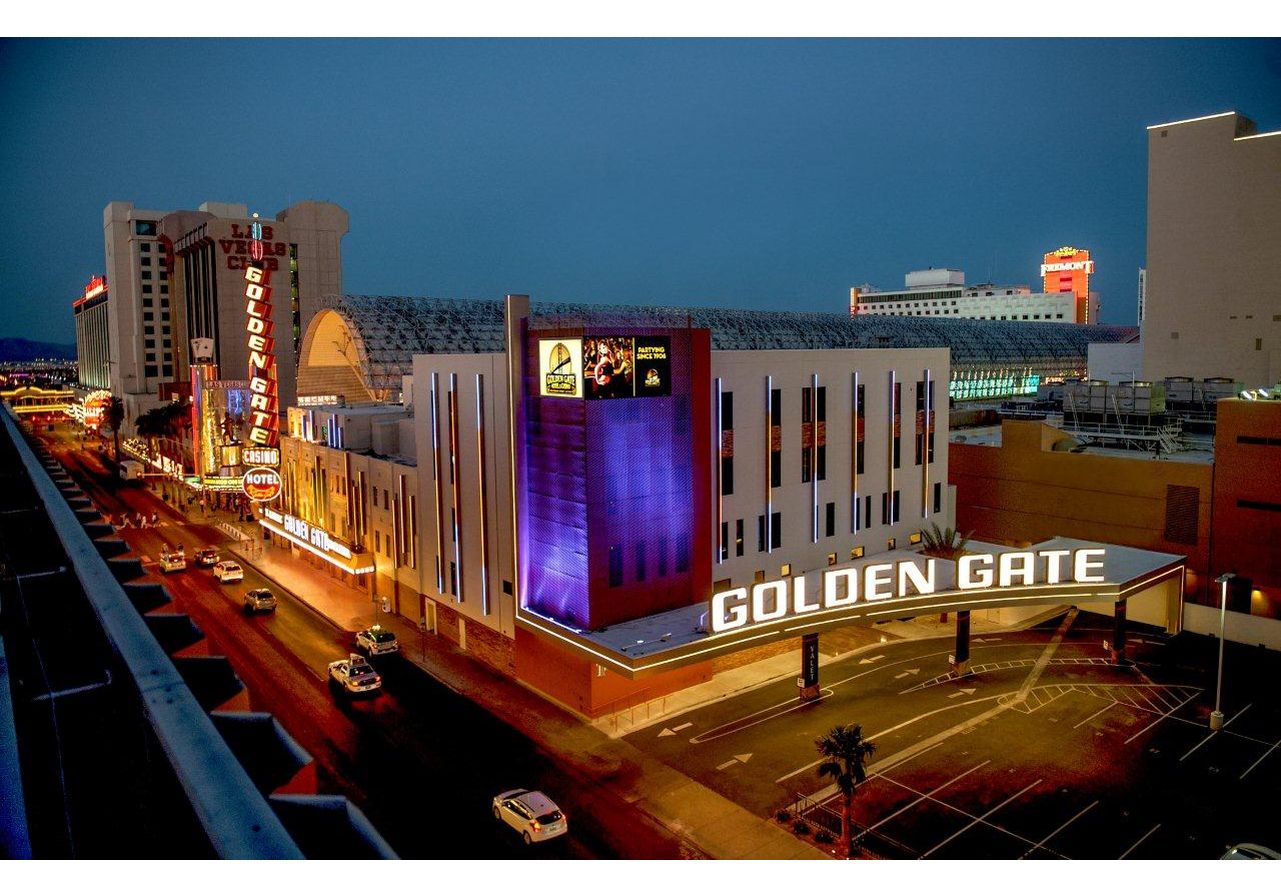 Golden Gate Casino (Las Vegas): THE LAS VEGAS ORIGINAL SINCE 1906 The Golden Gate is Las Vegas most historic hotel and casino, opening in 1906 at One Fremont Street. Our legacy spans the birth of Las Vegas, the Roaring 20s, the Rat Pack era and now into the 21st Century. We recently completed our first major expansion in 50 years, adding a 35,000-square-foot luxury tower with 16 suites, an expanded gaming floor with a high-limit pit featuring our signature dancing dealers, and a new lobby displaying artifacts from our historical past. The result is an intimate, boutique hotel/casino that is energetic and contemporary, yet preserves its historic character. The hotels new luxury suites present a fresh and contemporary feel, blended with styling that spans the decades. Each is themed with Swing era-inspired pinstriped carpeting; Art Deco accents; and a photograph of an iconic Las Vegas celebrity, many of whom frequented Golden Gate. All suites are climate-controlled with motion sensors and boast a 50-inch HD flat-screen TV, California king bed and sectional sofa with a queen-size pullout. The Golden Gate also features 106 recently remodeled rooms that date back to the 1906 opening. All of our guest rooms are furnished with pillow-top mattresses, flat-screen TVs, iHome clock radios, cable TV, voicemail and computer ports. We are conveniently located at the entrance to the Fremont Street Experience with the biggest video screen on the planet 10 stories tall and 4 blocks long, featuring free indescribable light shows. For reservations dial toll free (800) 426-1906.