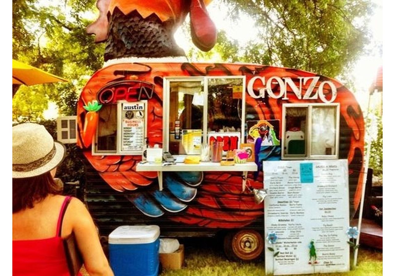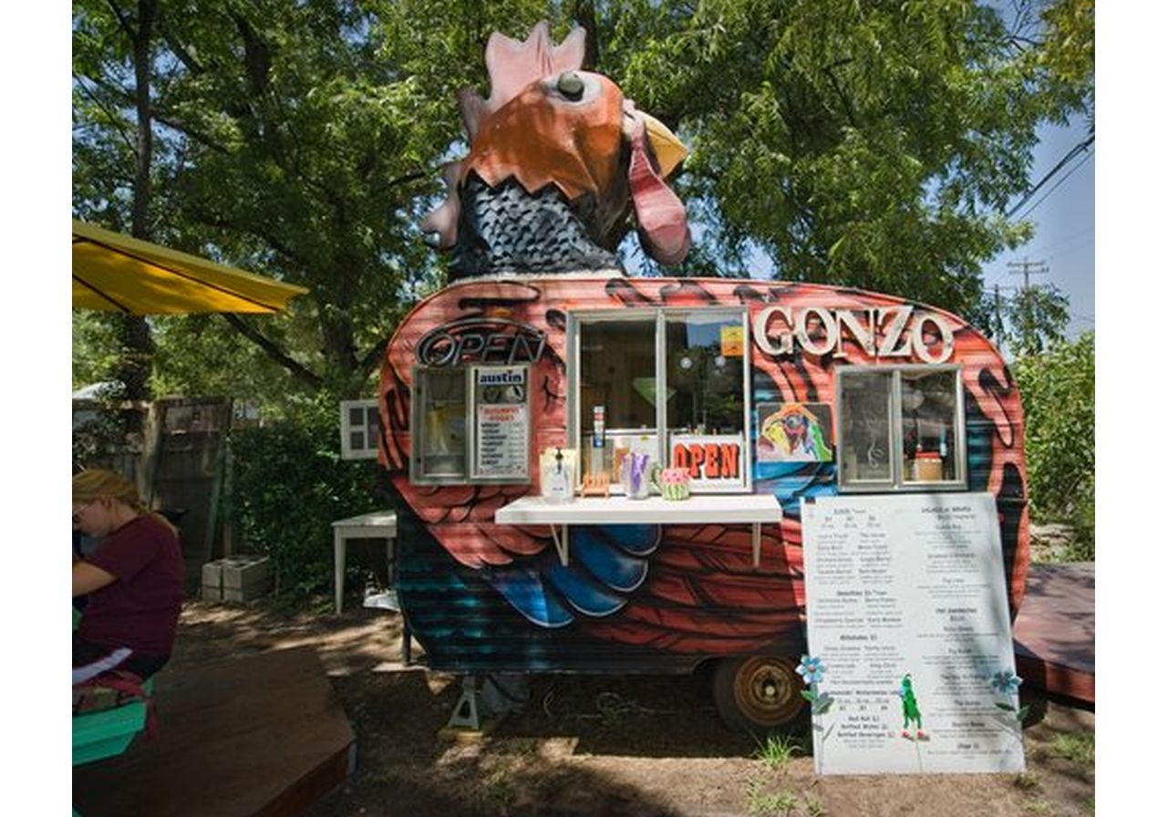 Gonzo Juice (Austin): Gonzo offers Juice, Salads, Wraps, Hot Sandwiches, Milkshakes and Smoothies made to order. We also offer weekly specials that will include side dishes guaranteed to tantalize your taste buds. Gonzo is a 1949 vintage Shasta trailer that resembles a rooster with a large head on top and we also have a mobile unit. We are located in the food park right NEXT to Cheer Up Charlie's and we have plenty of open seating. We are open LATE night on Fridays and Saturdays and are open for lunch throughout the week.